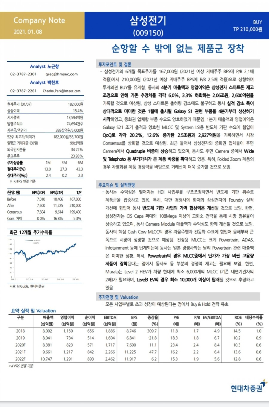 지난해 4분기 삼성전기의 매출 추정치는 2조1399억원으로 지난해 같은 기간보다 15.94% 늘어날 전망